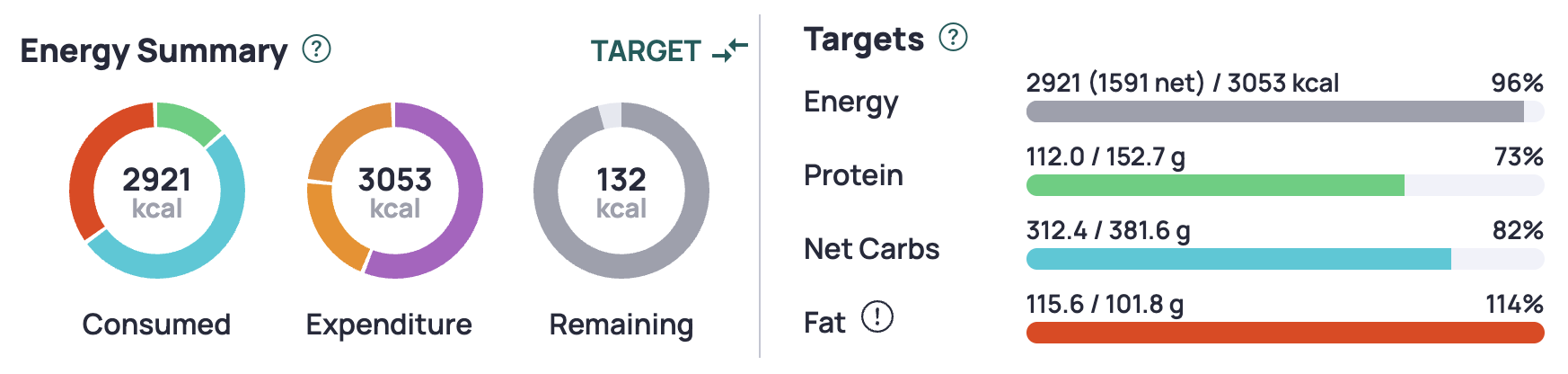 I’m OK with 112g. Cronometer does % for targets, so unless I can do a fixed target and combine that with % for fat and carbs, then this will be hard to always meet.