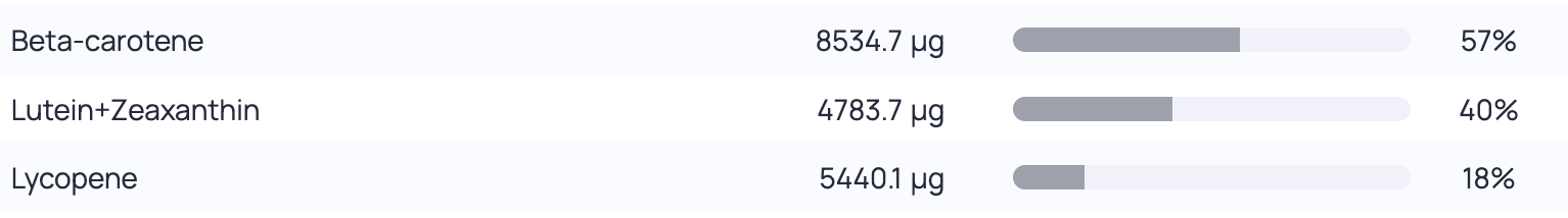 For Lutein & Zeaxanthin, I believe my values are actually a little higher than this, but missing in some of the nutrient values in certain foods that I’ve added.